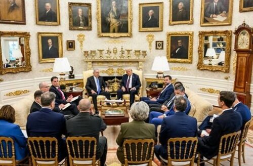 ホワイトハウスは、トランプ大統領とその側近たちが、ネタニヤフ首相およびその側近と緊密に協議をしている一連の写真を公開しました。