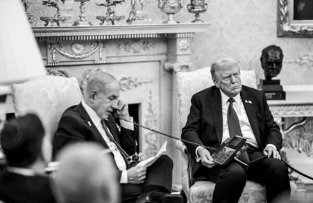 興味深いことにその中には、トランプ大統領自身が電話器を抱え、その前で、ネタニヤフ首相がカタールのムハンマド首相の詫びを入れているモノクロームの写真まで掲載されています。この写真は、ハマースとの仲介に当たっていたカタールの怒りを鎮めなければ、物事は9月9日以前に戻らなかったことをいみじくも物語っています。