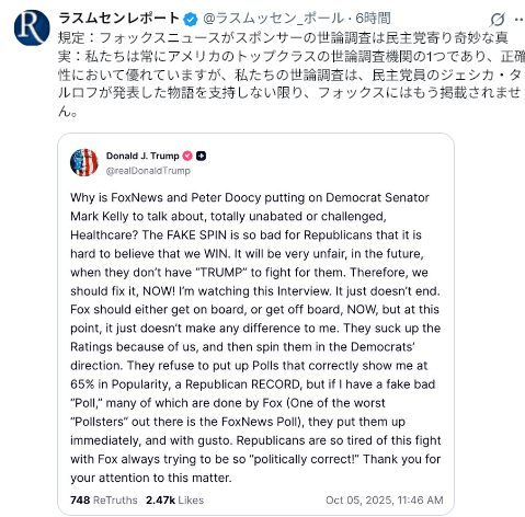Foxニュースはマードック支配。彼は共和党エスタブリッシュメント=グローバリストだから民主党寄りになるのはおかしくない。保守派の仮面を被ったリベラル。
