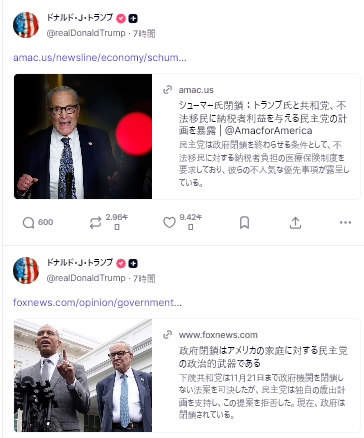 「シューマー首相」は「シューマー民主党上院院内総務」の誤り。