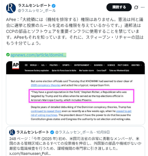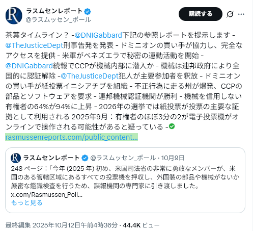 これらすべてに絡み合ったのが、コロラド州全域で650件以上の選挙システムのパスワードが、ジェナ・グリズウォルド州務長官のウェブサイトの隠しページから不正に漏洩されたという、確証のある事実です。2024年のトランプ大統領の出馬は「操作するには大きすぎる」とされていましたが、他のほとんどの選挙はそうではありませんでした。結果として、全国的に大規模な選挙操作が行われました。これらの操作の結果、現在、下院と上院は僅差で推移しています。