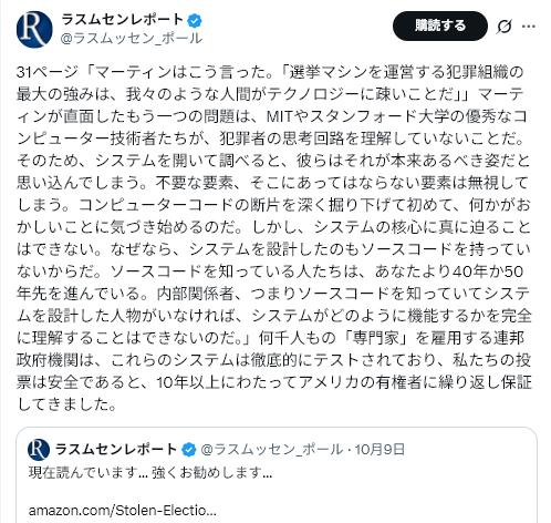 盗まれた選挙は米国をほぼ粉砕したすべての悪の根源であり、それを永続させ利益を得た裏切り者たちに正義が執行されなければならない。