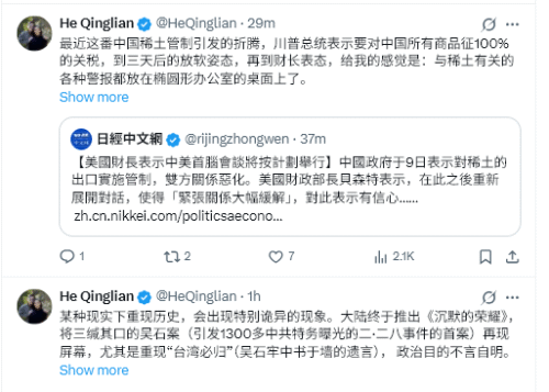 何清漣 @HeQinglian 1h