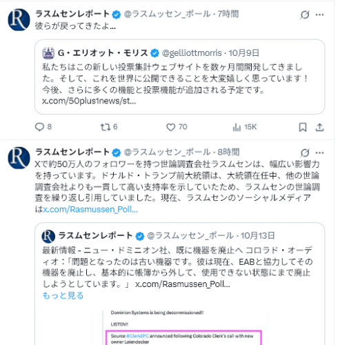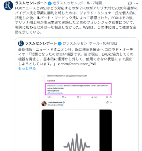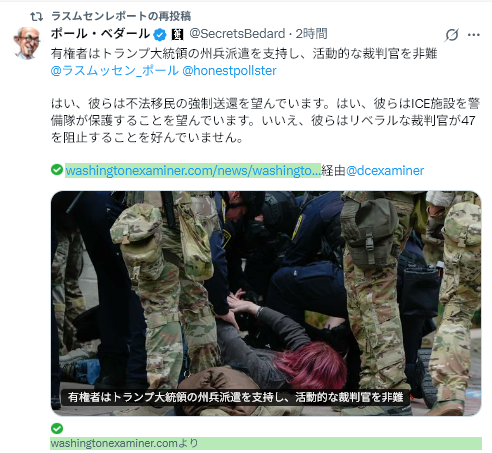 10/13Rasmussen Reports<52% Side With Trump on National Guard Deployment=州兵派遣に関して52%がトランプ大統領に賛成>