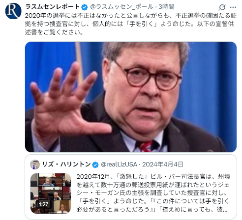 ビル・バー(共和党)こそ2020年不正選挙を主導した一人。逮捕起訴収監すべき人物。