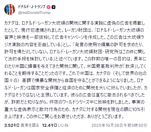 塩原氏の記事では、氏の言う「ウクライナ政策をめぐっては、トランプ政権に寄り添う姿勢」を示さなくとも、停戦・和平の早期実現に賛同だけで良いのでは。是々非々の方が良いと思う。トマホークのウクライナ譲渡は第三次大戦になる恐れもあり、レアアースが中国から入って来なくなることも考えれば、台湾有事のために在庫を確保しておかないといけない。ロシアの凍結資産のウクライナ支援の流用も財産権の侵害になるから、日本は認めない方が良い。そもそも欧州の戦争なのだから、欧州が金を出すべき。米国や日本に金を出させるのはおかしいと思う。そんな金があれば日本は自国の国防の充実にあてた方が良い。岸田がバイデンに頼まれてウクライナに2兆円近くも出したのもおかしい。岸田はバイデン同様キャッシュバックを貰っているのか?