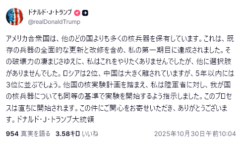 トランプ大統領は高市を高く評価し、日米同盟は「最強のレベル」にあると述べ、協力強化を約束した。トランプのアジア歴訪の一環として行われた今回の首脳会談では、重要鉱物、防衛協力、貿易に関する重要な合意が成立し、その影響は二国間関係にとどまらず、はるかに広範囲に及ぶものとなった。また、米国のアジア戦略に新たな活力ももたらした。