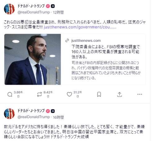 「彼らは我が国の恥です。この問題にご関心をお寄せいただきありがとうございます!」とトランプ氏は述べた。