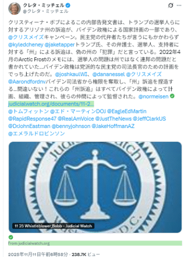11/10阿波羅新聞網<突发:美FBI局长无预警访问北京 曝与中共磋商2件事=速報:米FBI長官が北京を予告なく訪問、中共との2度の協議が明らかに>ロイター通信は、事情に詳しい2人の関係筋を引用し、10月末の韓国でのトランプ・習会談後、カシュ・パテルFBI長官が11月初旬に北京を訪問し、フェンタニルおよび関連する法執行問題について中国当局者と協議したと独占的に報じた。米国も中国もこの訪問を公式発表していない。