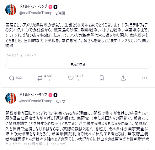 その一方で、同じ9日にはこの騒ぎを打ち消すかのように「台湾有事は中国の内政問題」だとする発信を引用して、「全く仰る通り、『台湾有事は日本有事』は日本の一部の頭の悪い政治屋が選ぼうとする死の道だ」などと発信し、自身の発Xアカウントのトップに常時掲げられる「固定」に設定している。