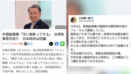 薛剣総領事が投稿した問題の「高市首相殺害予告」ともとれるポスト