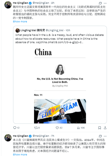 魏玲玲女史の記事は、米国の若い世代が目指す社会主義(北欧型の高福祉民主社会主義)と中国の特色ある社会主義を比較し、本質的な違いを把握している:選挙によって選ばれた政治家が提唱する福祉政策や実践は、すべての資源の供給と分配を統制し、世論も支配する一党独裁政権のそれとは全く異なるのだ。