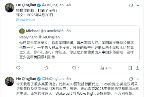 嘘をつく前に、英語を少し勉強して米国のニュースを読んだ方がいい。そうすれば騙すことは出来なくなる。米国の選挙は投票率が50/50で、人口の半分は全く投票しない。投票する人は、常にどちらがより悪いか競い合っている腐敗した二つの政党からしか選べない。知らないの? 知っているなら、米国と中国がいかに後進的かということに焦点を当てた方がいい。そうすれば、少なくとも米国の状況を誤判断しなくて済む。