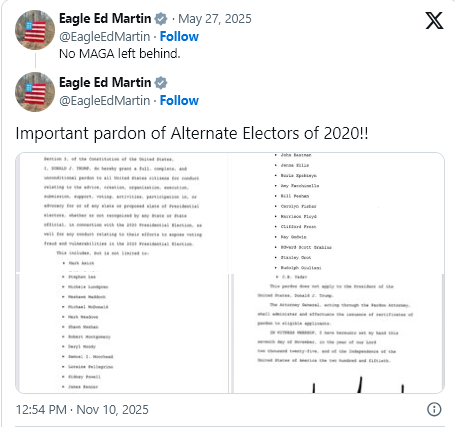 https://www.thegatewaypundit.com/2025/11/alert-announcing-huge-trump-pardons-ed-martin-turns/