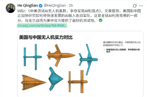 WSJ:「米中、AIドローン群の試験運用、軍事AIの優位性を競う」という記事では、米中が世界的なAI活用競争の一環として、急速に発展するAIをそれぞれの軍隊に組み入れる方法の研究を加速させていると述べられている。ウクライナの戦場は、両国にとって最適な試験場となる。 https://cn.wsj.com/articles/%E4%B8%AD%E7%BE%8E%E6%B5%8B%E8%AF%95ai%E6%97%A0%E4%BA%BA%E6%9C%BA%E9%9B%86%E7%BE%A4-%E4%BA%89%E5%A4%BA%E5%86%9B%E7%94%A8ai%E5%88%B6%E9%AB%98%E7%82%B9-c0ec663f