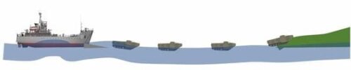 図 揚陸艦から水陸両用車を使った上陸(イメージ)