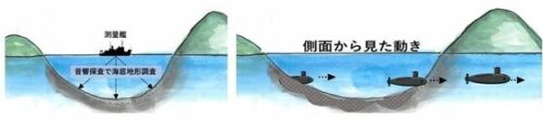 図 潜水艦の行動に資する測量艦の海底調査(イメージ)