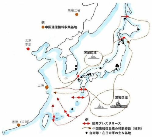 中国は軍事力を増強し近代化しているなかで、情報収集機を日本に接近させ、監視レーダーの能力とレーダーへの攻撃のための情報収集や潜水艦が通過できるように南西諸島の海峡や津軽海峡の海底の情報収集を頻繁にしている。