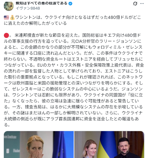 米国は長らく、ウクライナが効果的な汚職対策と改革を実行することを、支援継続の重要な条件としており、ウクライナ国内の汚職による政治的混乱が、トランプ大統領などによるロシア寄りの和平案を受け入れさせるための「弱み」として利用されるかもしれない。