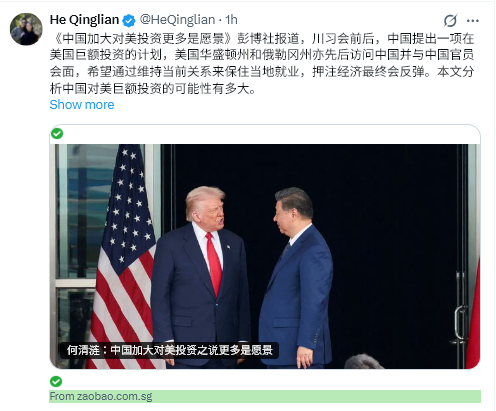 「中国の対米投資拡大は単なるビジョン」、ブルームバーグは、トランプと習近平席の会談と前後して、中国が米国への大規模な投資計画を提案したと報じている。ワシントン州とオレゴン州も前後して中国を訪問し、中国当局者と会談した。これは、現在の関係を維持することで現地の雇用を維持し、経済が最終的に反発するのに賭けるためだ。この記事では、中国による米国への大規模な投資の可能性がどれくらいかを分析している。