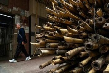香港で建設現場の足場に使われる竹(写真:AP/アフロ)