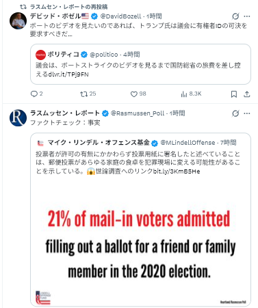 司法省が不正選挙の起訴に力を入れないから、民主党がのさばる結果になる。悪者を監獄送りにしないと。
