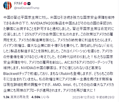 12/9阿波羅新聞網<美国会公布重大法案 这时公布习近平财富=米議会が重大法案を発表、習近平の富が明らかになる>米議会は12/7(日)、2026年度の国防権限法案(NDAA)を発表した。この法案は、北京を軍事、産業、外交、そして世界経済の分野におけるワシントンにとっての主な戦略的挑戦と位置付け、新たな投資制限の導入、国防総省のサプライチェーンへの中国製技術の流入禁止、そして北京の世界的な影響力を追跡するための外交・情報活動の拡大を通じて、米中間の経済・軍事競争の構造の再構築を試みている。また、この法案は台湾に対する政治、経済、軍事支援の拡大も規定している。