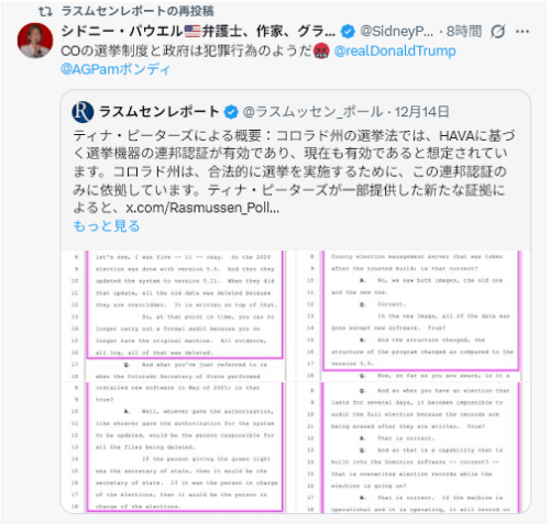 「トランプ大統領の恩赦は有効だと信じています。ティナは州務長官が破棄する前に選挙記録を保存していたため、連邦政府の職務を遂行していたのです。」 – ジョン・ケース、ティナ・ピーターズ氏の弁護士@Bannons_WarRoom pic.twitter.com/k5bHH5DN9Q