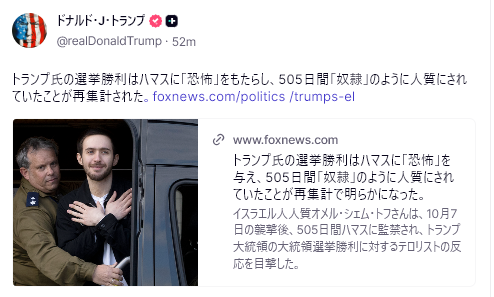 Truth Socialへの投稿で、トランプ大統領は次のように述べた。