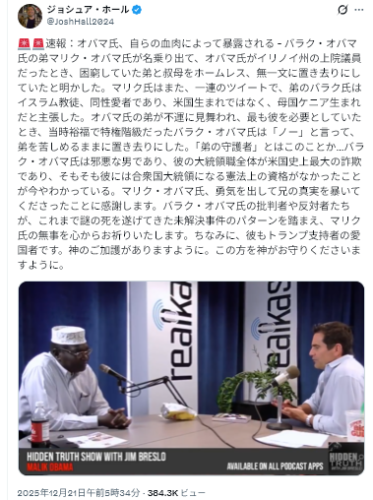 12/22The Gateway Pundit<Vice President JD Vance Wins TPUSA Straw Poll for 2028 GOP Presidential Nominee, Read the Full Results=2028年共和党大統領候補指名をめぐるTPUSA予備選挙で、JD・ヴァンス副大統領が勝利。全結果はこちら>