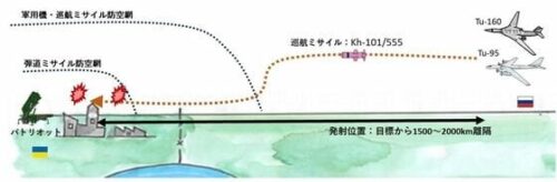 Tu-95等が保有する巡航ミサイルは、射程が2500キロ以上ある。ウクライナ戦争での爆撃機のミサイル攻撃を見ると、攻撃地点は目標から約1500~2000キロ離れた位置からである。