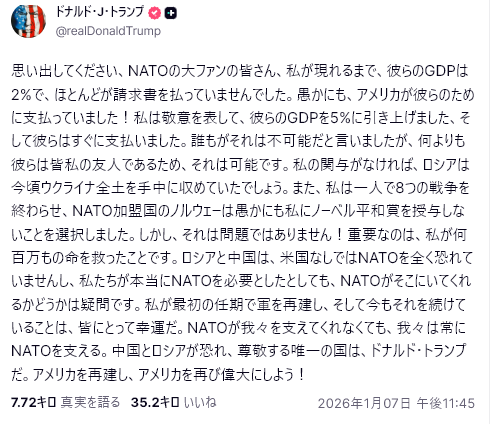 トランプは、66の国際機関(国連の31機関+国連以外の35機関)から米国を脱退させる覚書に署名した。これらの機関はもはや米国の利益にかなわないためだ。