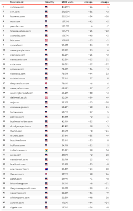 Press Gazette は最近、現在米国で最もアクセス数の多いウェブサイトのトップ 50 の月間ランキングを発表しました。