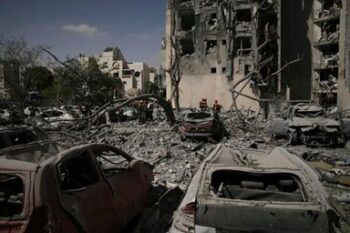 イスラエルとイランが軍事衝突。イスラエルのベエルシェバで、イランのミサイル攻撃により複数の死者が出た現場を調査するイスラエルの治安部隊(2025年6月24日、写真:AP/アフロ)