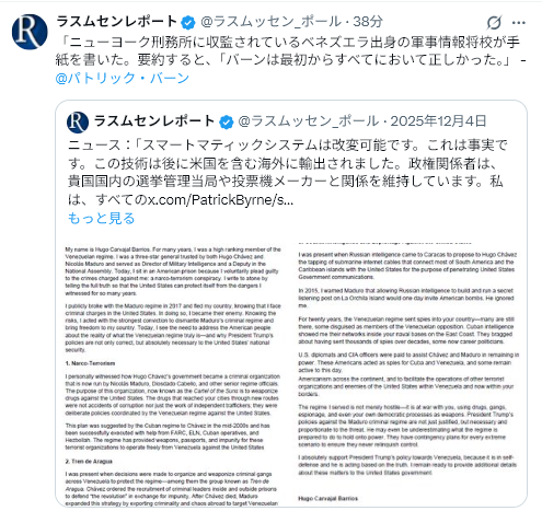 論理的に考えると、ティナの解放がもたらす影響は、ディープステートとジェナ・グリズウォルドにとって甚大なものに思えるだろう。しかし、マドゥロの逮捕により、この時点からの反発は加速し、選挙不正に加担したすべての人々にとって、はるかに大きな問題へと発展するだろう。ポリス知事が、グリズウォルドとディープステートの手先への影響はさておき、この状況に積極的に対処するのは賢明な判断だ。マドゥロがすべきことは、ゲイリー・バーンステンの証言とティナの調査結果(https://tinapeters.us/)が正確であることを認めることだけだ。そうすれば、不正選挙の手口は一掃される。マドゥロが直面する暗い未来を考えると、この状況はすぐにでも現実のものとなるだろう。実際、中間選挙が壊滅的な形で不正に操作されるのを防ぐため、この認定はタイムリーに行われる可能性が高い。