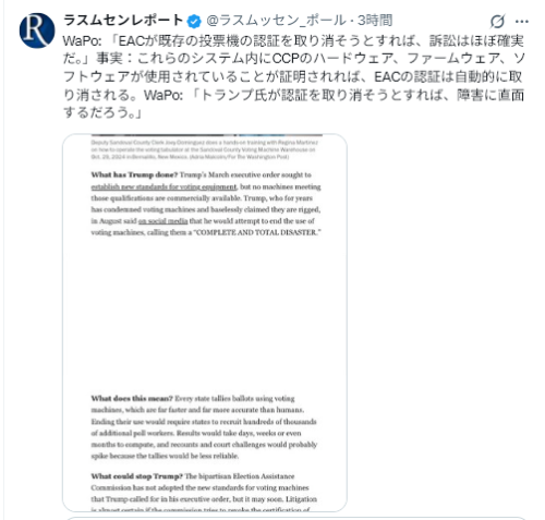 今週の出来事は、米国における正義の歴史的な勝利となり、過去25年以上にわたり、コンピューターによる選挙の不正操作によって米国が苦しんできた圧政の終焉の始まりとなる可能性がある。選挙を不正に操作することは、国を不正に操作することだ。