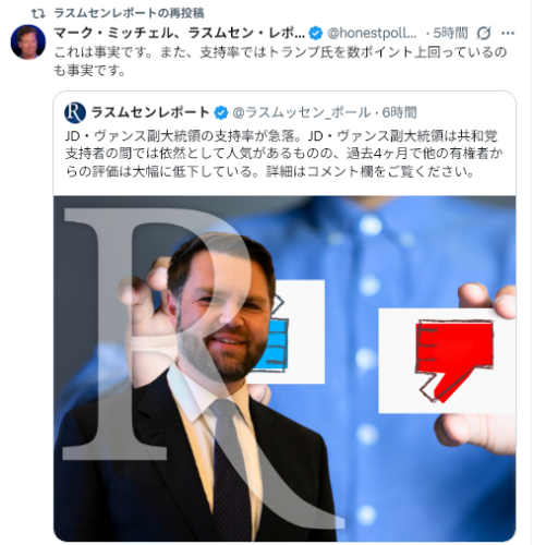 1/12Rasmussen Reports<J.D. Vance’s Favorability Drops Sharply=JD・ヴァンスの好感度が急落>