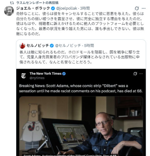 ミネソタ州での移民税関捜査局(ICE)による取り締まり中に起きた死亡事件は、左派に2000年(2020年?)5月のフロイド事件の再現を強く求めさせ、彼らの見方では、この事件の主人公はフロイドよりも「米国の英雄」になる可能性が高いと考えている。