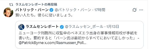 1/13Rasmussen Reports<51% Approve Maduro Capture=マドゥロ捕獲に51%が賛成>