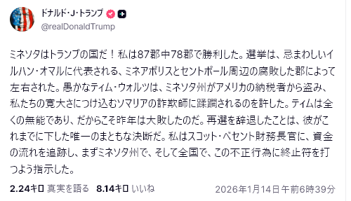 トランプ大統領が上記のメッセージを共有してからわずか数時間後、ベネズエラでの出来事を受けて、この発言は新たな意味を帯びるようになった。