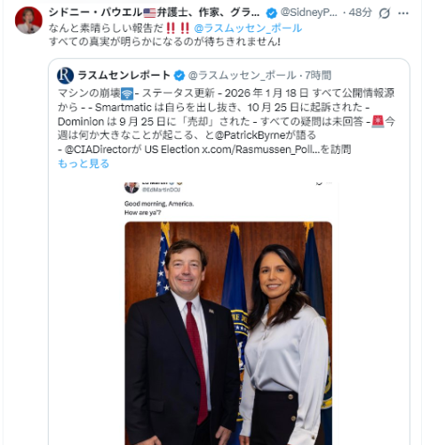 1/18The Gateway Pundit<Senator Ted Cruz: “There is a very real possibility, that in the next six months the regimes in Iran, in Venezuela, and Cuba will all fall” (VIDEO)=テッド・クルーズ上院議員:「今後6ヶ月以内に、イラン、ベネズエラ、キューバの政権がすべて崩壊する可能性は非常に高い」(ビデオ)>