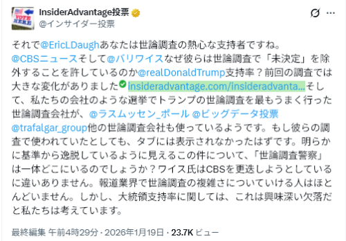 何か細かい点に気づいた人はいるだろうか?今回、トランプは「後で考える」と先に言ったのではなく、グリーンランドを必ず奪取すると明言したのだ。なぜか?