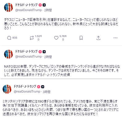 トランプ米大統領は就任以降、グリーンランド奪取への意欲を繰り返し強調してきた。2026年1月以降、特にこの10日間で、トランプはグリーンランド奪取の意向を4回表明している。