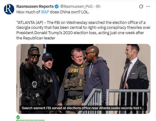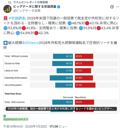 1/28Rasmussen Reports<Election Integrity: 74% Favor Requiring Voter ID=選挙の公正性:74%が有権者IDの提示義務化に賛成>