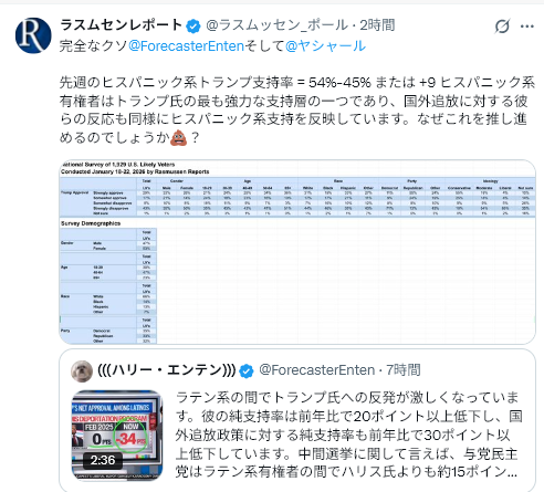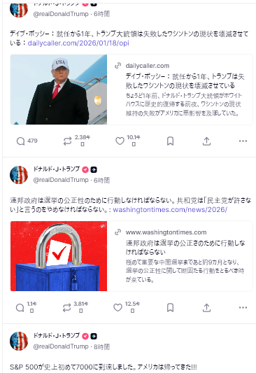 トランプ:「アレックス・プレッティの両親についてはよく知らないが、レニー・グッドの両親が熱狂的なトランプファンだということは知っている。これは私を悲しませるが、正直言って、もっと悲しい。彼らは素晴らしいトランプ支持者、トランプファンである。」