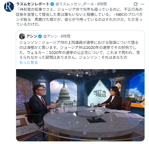 ジョンソン氏:郵送投票用紙は全員に送付されました。ジョージア州で発生した問題は誰もが知っています。非常に物議を醸し、そこで起こった様々な出来事のせいで、今もなお議論が続いています。繰り返しますが、私たちはそれを再調査するつもりはありませんが、今後私たちが注力すべきは、選挙に関する疑問が残らないようにすることです。だからこそ共和党は連邦レベルと州レベルで、これらの問題を整理し、有権者名簿を整理し、例えば不法移民が投票しないように取り組んでいます。これが「SAVE法」の目的です。私たちはこれを継続しなければなりません。大統領もこれにしっかりと注力しています。この調査は、フルトン郡の選挙に関するあらゆる疑問が適切に調査され、人々が再び選挙制度に信頼を寄せられるようにするためのものです。これは非常に重要です。