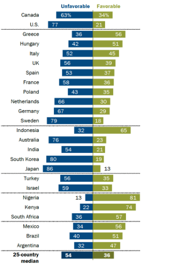 木村氏の記事では、門田隆将氏が言った「媚中勢力成敗選挙」の通りになった。左翼の岡田、小沢、枝野、安住等が軒並み落選。中道は公示前勢力167→49議席に激減。共産は8→4に半減、れいわは8→1に激減、社民はゼロと左翼系は激しく数字を落とした。高市首相の「台湾有事」発言を国民は支持したと言える(高市氏は法的解釈をそのまま述べただけで、当たり前の発言)。中共に忖度し、高市発言を撤回・謝罪を要求した政界人や経済人、メデイア人は大いに恥じ入ればよい。中共のやることに賛成する日本人は殆どいないのに。中共のマネトラやハニトラに罹っている人間、或いは仕事でやむなく中共を支援せざるを得ない人間、左翼思想に染まっている人間だけが、中共の味方をする。下図は昨年11月のピューリサーチの各国の対中好意度を表す。日本人の対中好意度:好ましく思わない度合い=13:86。