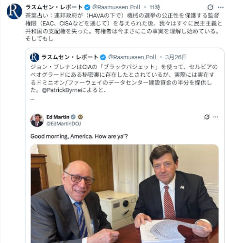 3/26Rasmussen Reports<Generic Congressional Ballot  Republicans Narrow Gap in Midterm Forecast=下院選挙投票用紙  共和党、中間選挙の予測で差を縮める>