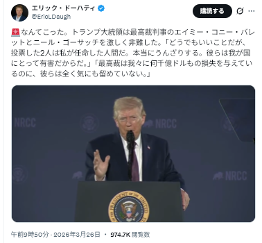トランプ氏:アメリカ合衆国最高裁判所は我が国に何千億ドルもの損失を与えたが、彼らは全く気にも留めていない。
