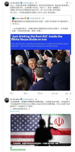 何清漣のコラム「米国の対イラン戦争の二重の困難―エスカレーションも困難、撤退も困難」によると、この「戦略なき戦争」と呼ばれる紛争は、トランプ大統領を政治と現実のジレンマに陥れている。なぜ「戦略なき戦争」と呼ばれるのか?それは以下の事実に基づいている。